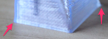 Questo effetto può anche essere causato dall’eccessivo peso del modello che preme sui primi strati già da prima che questi abbiano avuto modo di solidificarsi abbastanza. Succede in particolare in caso di piatto riscaldato.